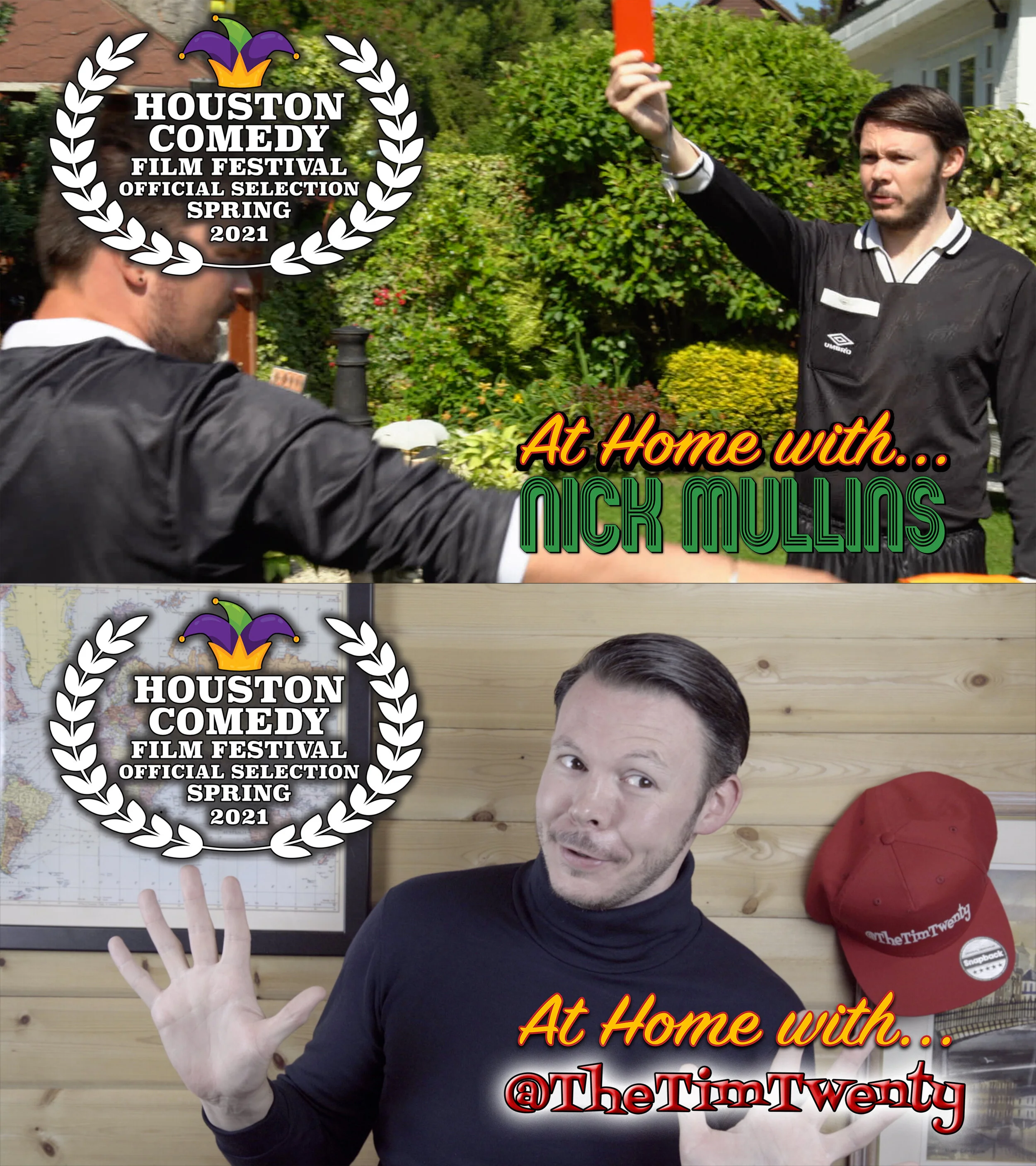 “At Home with… Nick Mullins” and “At Home with… @TheTimTwenty” have been selected for Spring’s edition of Houston Comedy Film Festival. The prestigious bi-annual comedy film festival takes place at Alamo Drafthouse Cinema LeCenterra in Texas on Saturday 1st May 2021.